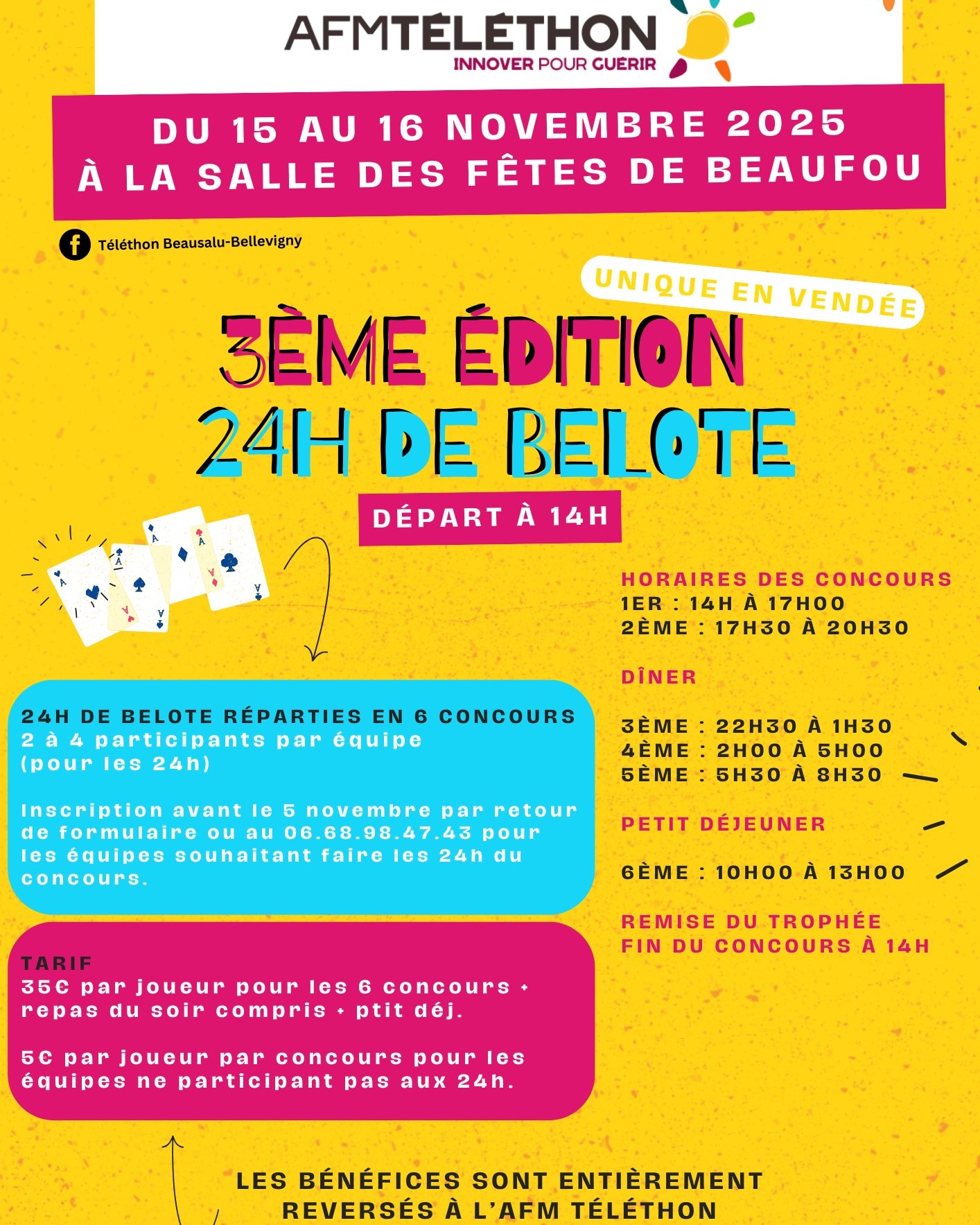 Venez participer à notre grand marathon de belote au profit du Téléthon !