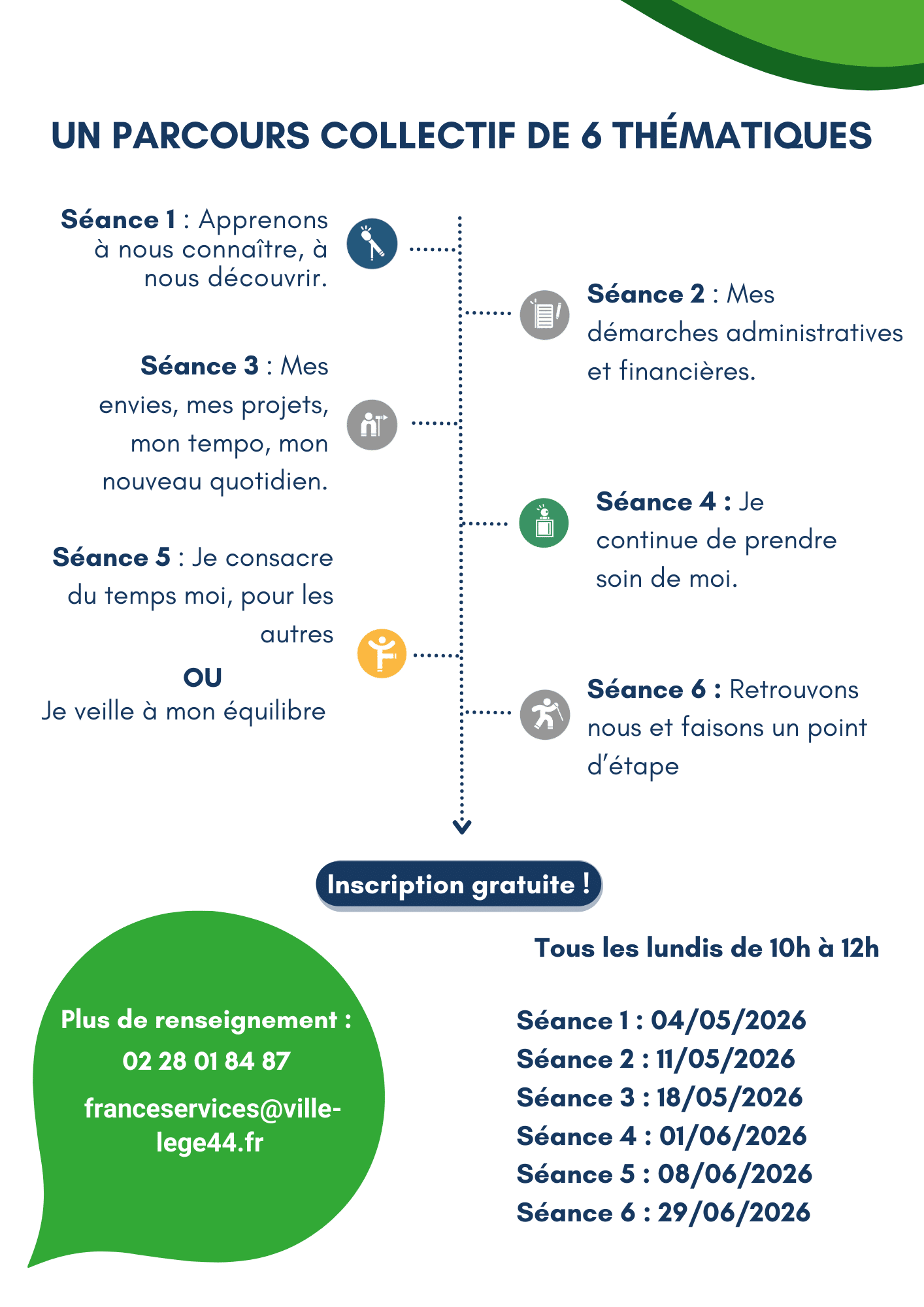 Les inscriptions se font à France services au 02 28 01 84 87 – franceservices@ville-lege44.fr